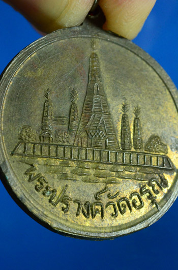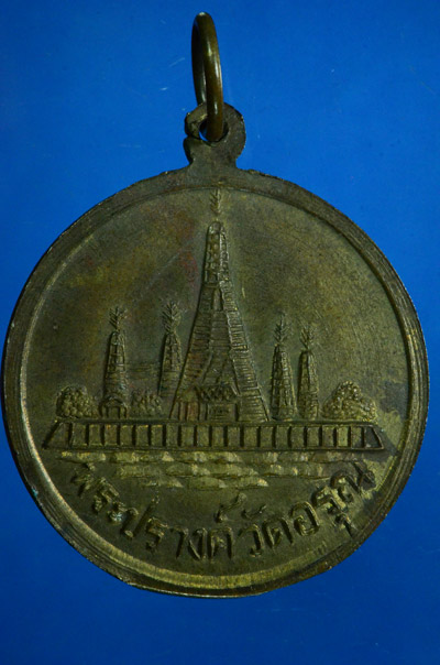 เหรียญสมเด็จพระเจ้ากรุงธนบุรี (พระเจ้าตากสิน) หลังพระปรางค์วัดอรุณ พิมพ์ใหญ่ บล๊อควงเดือน (นิยม) เนื้อทองฝาบาตร ปี 2508 สวยครับ