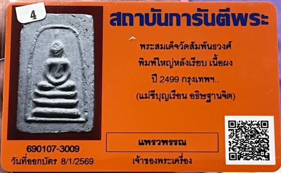 พระมงคลมหาลาภพระสมเด็จพิมพ์ใหญ่เนื้อผงพรหมโสฬรปี2499.คุณแม่บุญเรือน