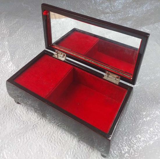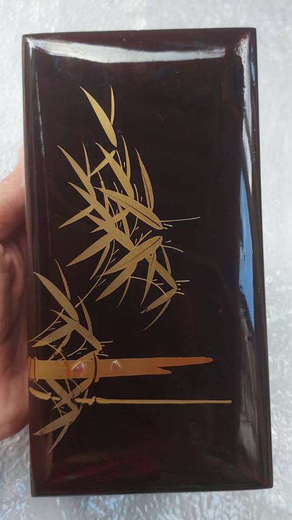 ***วัดใจ***กล่องเครื่องประดับมีดนตรี MADE IN JAPAN กล่องเครื่องประดับเคลือบเงาสีดำสไตล์ญี่ปุ่นวินเทจ ประดับลายไผ่สีทอง ใช้งานได้ ใช้งานได้