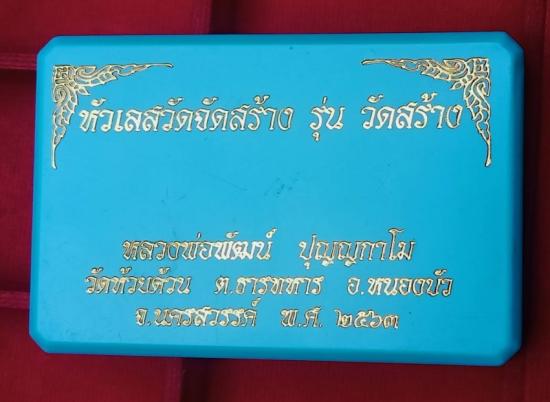 หัวเลสวัดจัดสร้าง รุ่นวัดจัดสร้าง หลวงพ่อพัฒน์ ปุญญกาโม วัดห้วยด้วน นครสวรรค์ เนื้อปีกเครื่องบินลงยาฟ้า หมายเลข ๑๕๐๕ พร้อมกล่องเดิม |