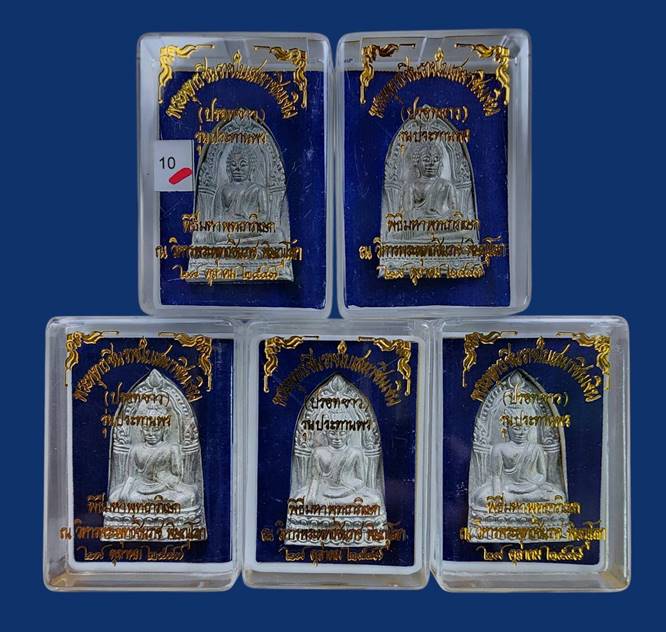 ( 5 องค์ ) พระพุทธชินราชใบเสมา รุ่นประทานพร เนื้อชินเงิน หรือเนื้อปรอทขาว จัดสร้างขึ้นในปี 2547 มาพร้อมกล่องเดิมจากวัดครับ 10