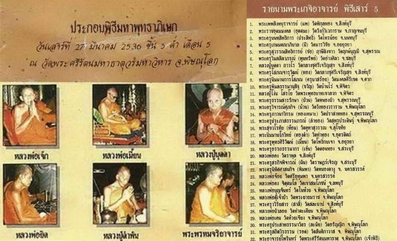 ประกอบพิธีมหาพุทธาภิเษก วันเสาร์ที่ 27 มีนาคม 2536 ณ.วิหารพระพุทธชินราช วัดพระศรีรัตนมหาธาติวรมหาวิหาร จ.พิษณุโลก