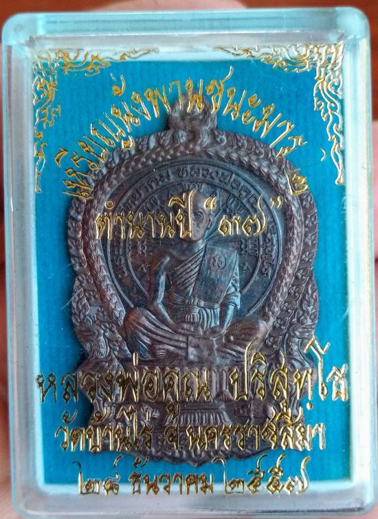 เหรียญนั่งพานชนะมาร 2 ตำนานปี 37 หลวงพ่อคูณ ปริสุทโธ ปี 2557 ตอกนัมเบอร์ 1127 พร้อมกล่องเดิมสภาพสวย