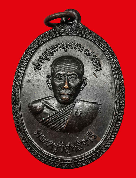 เหรียญหลวงพ่อกล่ำ วัดวิสุทธิยาราม(ศาลาบางปู) รุ่นแรก เนื้อทองแดง ห่วงเดิม ปี2519 จ.นครศรีธรรมราช + บัตรG-pra สภาพสวยเดิมค่ะ
