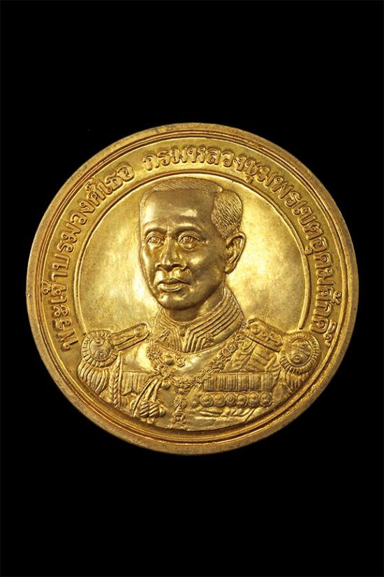 เหรียญกรมหลวงชุมพร วัดเขตอุดมศักดิ์วนาราม จ.ชุมพร ปี 2541 เนื้อกะไหล่ทอง สวย ๆ (ด้านหลังตอกโค๊ต และตอกหมายเลข)