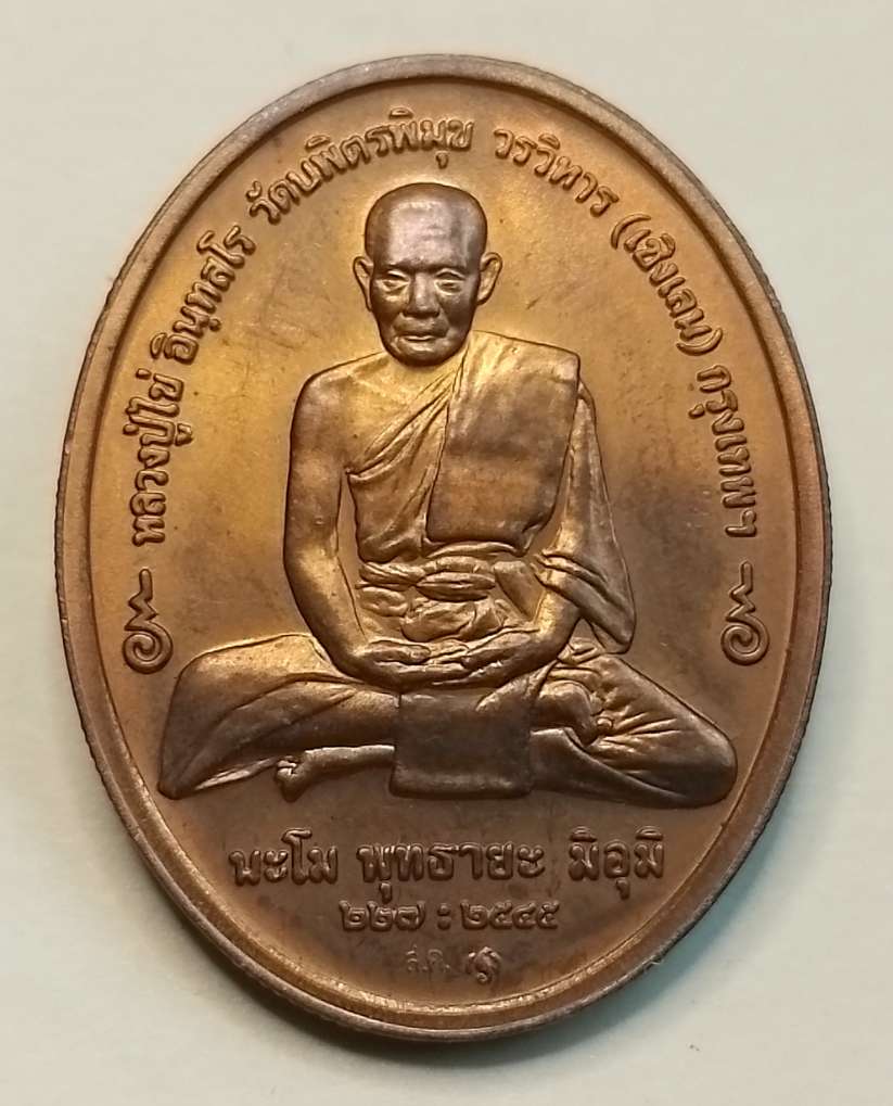 เคาะเดียว 100 / เหรียญหลวงปู่ไข่หลังพระพุทธอรหังกลีบบัว เนื้อทองแดง บล็อกกษาปณ์ วัดบพิตรพิมุข กรุงเทพ ปี2545