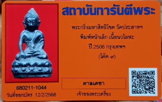 พระกริ่งมหาสิทธิโชค วัดประสาทฯ พิมพ์หน้าเล็ก (โค๊ต ๙) เนื้อนวโลหะ ปี2506 พระสวยผิวเดิมๆหายากนานๆจะมีมาที สภาพตามรูปเลยครับ พร้อมบัตรการันตีพระ