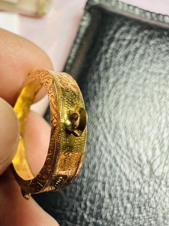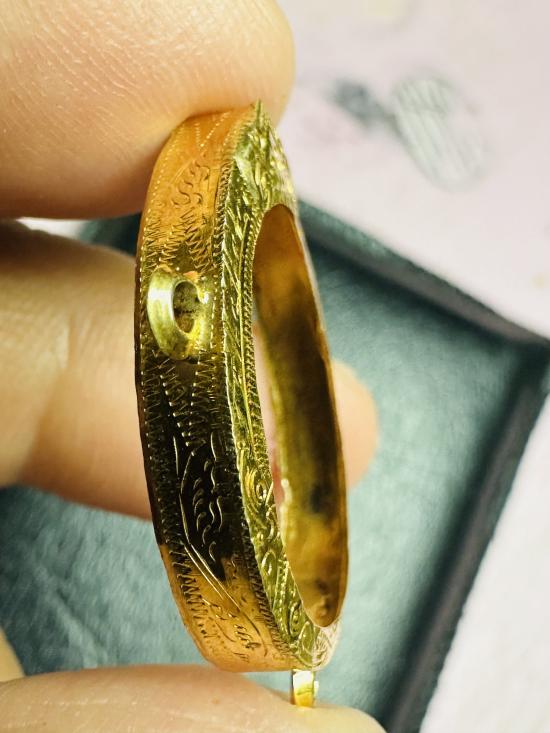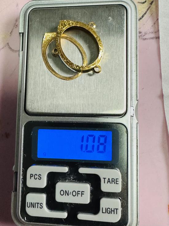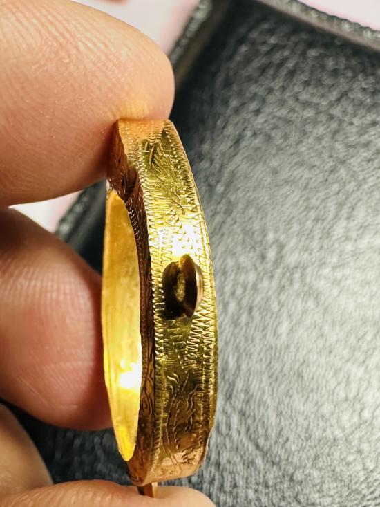 เคาะเดียว กรอบทองคำแท้มือ2 ใส่เหรียญนาคปรกหรือเหรียญเม็ดแตง ขนาด1.6cm. X 2.1cm. หนัก1.08 กรัม เป็นงาน 62%-68% ครับ สภาพสวย