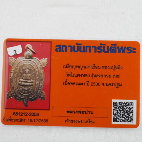 เหรียญพญาเต่าเรือน รุ่น 3รวย (รวย รวย รวย) ทองแดง ปี 2536 บัตรg