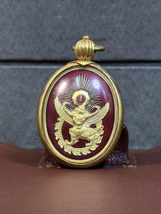 ลักษณะ: ด้านหน้าเป็นรูปพญาครุฑสีกายแดง ล้อมรอบด้วยกะไหล่ทองลงยาราชาวดีสีแดง