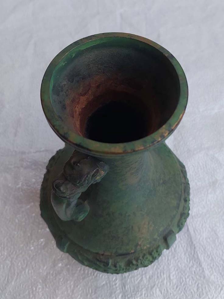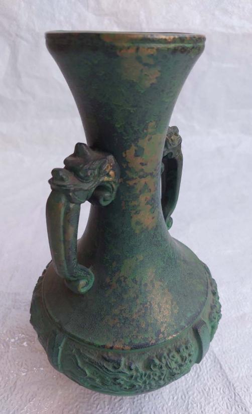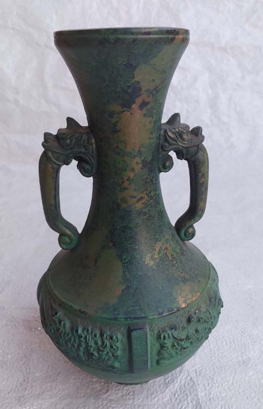 ***วัดใจ***แจกันเก่าเก็บทรงโบราณ หูมังกร เนื้อสำริด สูง 11 นิ้ว น้ำหนัก 2 โลกว่า
