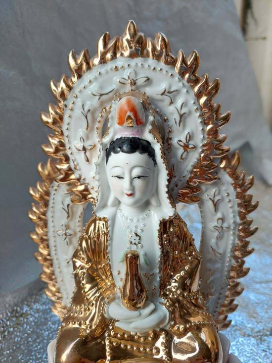 ***วัดใจ***เจ้าแม่กวนอิมแผ่รัศมี งานกระเบื้องเคลือบทอง สูง 11 นิ้ว พิมพ์นี้หายาก