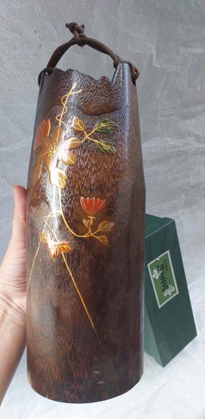 ***วัดใจ***แจกันไม้ธรรมชาติ ต้นจักรพรรดินี (Empress Tree) เป็นงานฝีมือจากคานาซาวะ เพ็นลายทอง หูร้อยด้วยหวาย สวยๆ สูง 13 นิ้ว กว้าง 5 นิ้ว