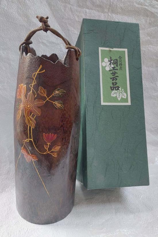 แจกันไม้ธรรมชาติ ต้นจักรพรรดินี (Empress Tree) เป็นงานฝีมือจากคานาซาวะ เพ็นลายทอง หูร้อยด้วยหวาย สวยๆ