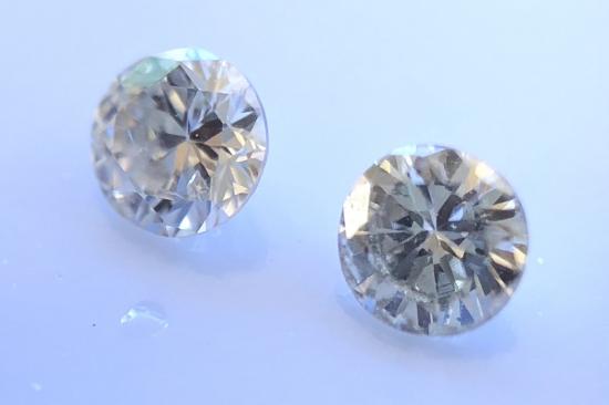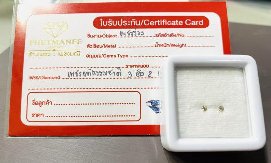 เพชรแท้ธรรมชาติ เหลี่ยมเบลเยี่ยมคัต แกะจากตัวเรือนสินหลุดจำนำ จำนวน 2 เม็ด น้ำหนักรวม 0.06 กะรัต น้ำประมาณ 92-93 I-SI |