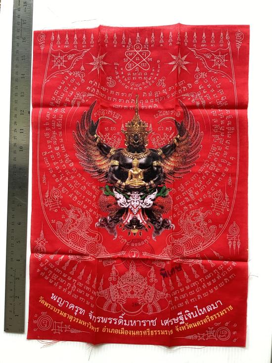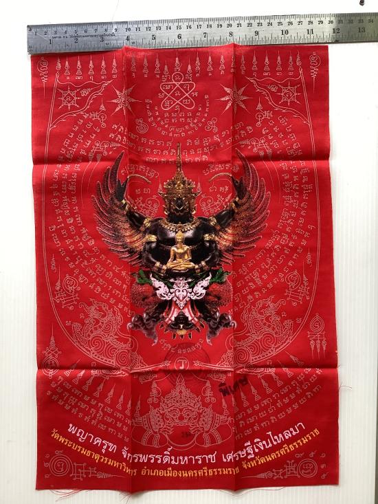 ผ้ายันต์ พญาครุฑ รุ่น เศรษฐีเงินไหลมา วัดพระศรีมหาธาตุวรมหาวิหาร จ.นครศรีธรรมราช สีแดง ขนาด A3 ขนาด 11.5 นิ้ว x 16.5 นิ้ว |