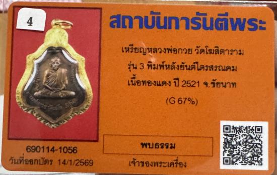 เหรียญหลวงพ่อกวย วัดโฆสิตาราม รุ่น 3 หลังยันต์ไตรสรณคม