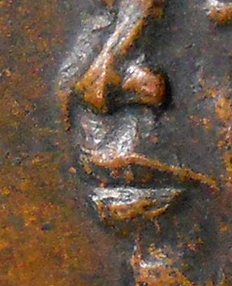 1) ปลายโหนกแก้มขวาหลวงพ่อแหลมเป็นสามเหลี่ยมชายธง