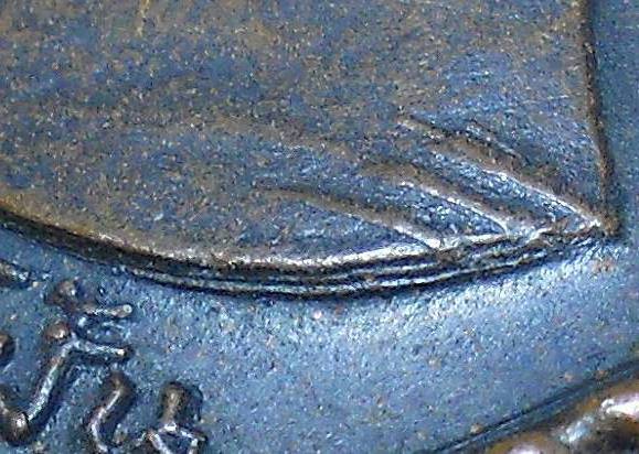 2) โคนหูเหรียญเป็นเส้นโค้งยาว ต่ำลงมาเป็นแนวปื้นหนา คล้ายคลื่นกระดาน