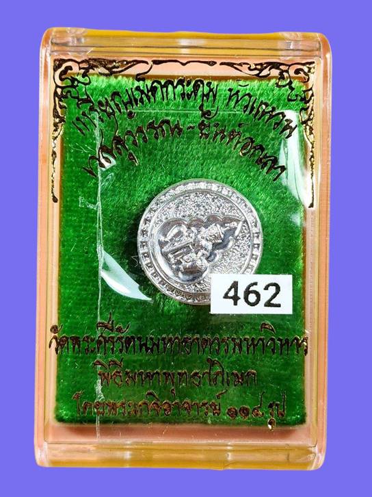 (เนื้อปีกเครื่องบิน-แจกในพิธี เลข 462 ) เหรียญเม็ดกระดุม หัวแหวน เวสสุวรรณ ยันต์นะเศรษฐี หลังยันต์อกเลาพระพุทธชินราช : สาริกาคู่ #ขนาดเส้นผ่าศูนย์กลาง 1 เซนติเมตร วัดพระศรีรัตนมหาธาตุวรมหาวิหาร |