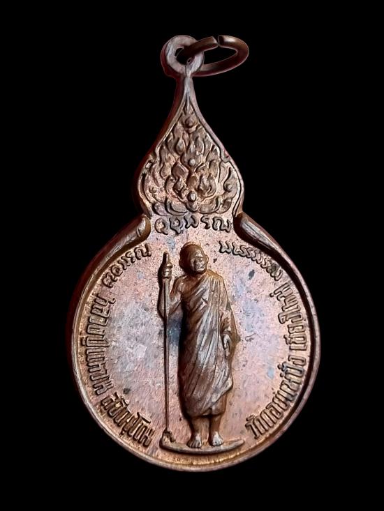 150 ++ เหรียญยืนหลังรวมใจ หลวงปู่แหวน สุจิณฺโณ วัดดอยแม่ปั๋ง ปี 2518 เนื้อทองแดงผิวไฟ