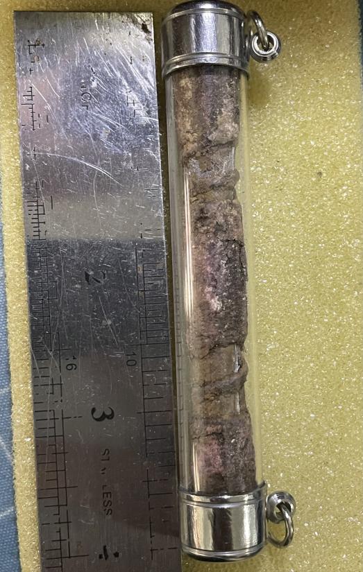 ตะกรุด ขนาด 4 นิ้ว มีแผ่นตะกั่วด้านใน ไม่ทราบที่