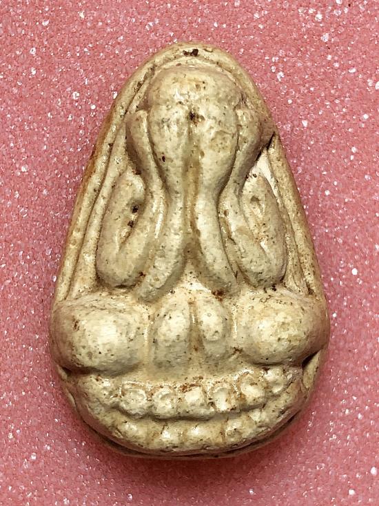 พระปิดตาเนื้อผงเหลืองอมขาวหม่นๆ เก่า ไม่ทราบที่