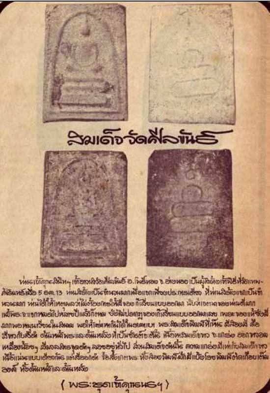 พระสมเด็จ เนื้อผงใบลาน วัดศีลขันธ์ ที่สร้างในปี พ.ศ.2513 นี้ถือเป็น พระสมเด็จรุ่นแรก ของวัดศีลขันธ์ และทันท่านเจ้าคุณนรฯ อธิษฐานจิต ซึ่งทางวัดศีลขันธ์ ได้มีพระสมเด็จรุ่นสอง รุ่นสามออกตามมาด้วย ในปี พ.ศ.2514 และ พ.ศ.2517 โดยที่สร้างขึ้นหลังกาลมรณะของท่านเจ้าคุณนรฯ แต่ใช้มวลสารที่ท่านเจ้าคุณนรฯได้อธิษฐานจิตไว้ให้เมื่อครั้งสร้าง พระสมเด็จ รุ่นแรก ปี 2513