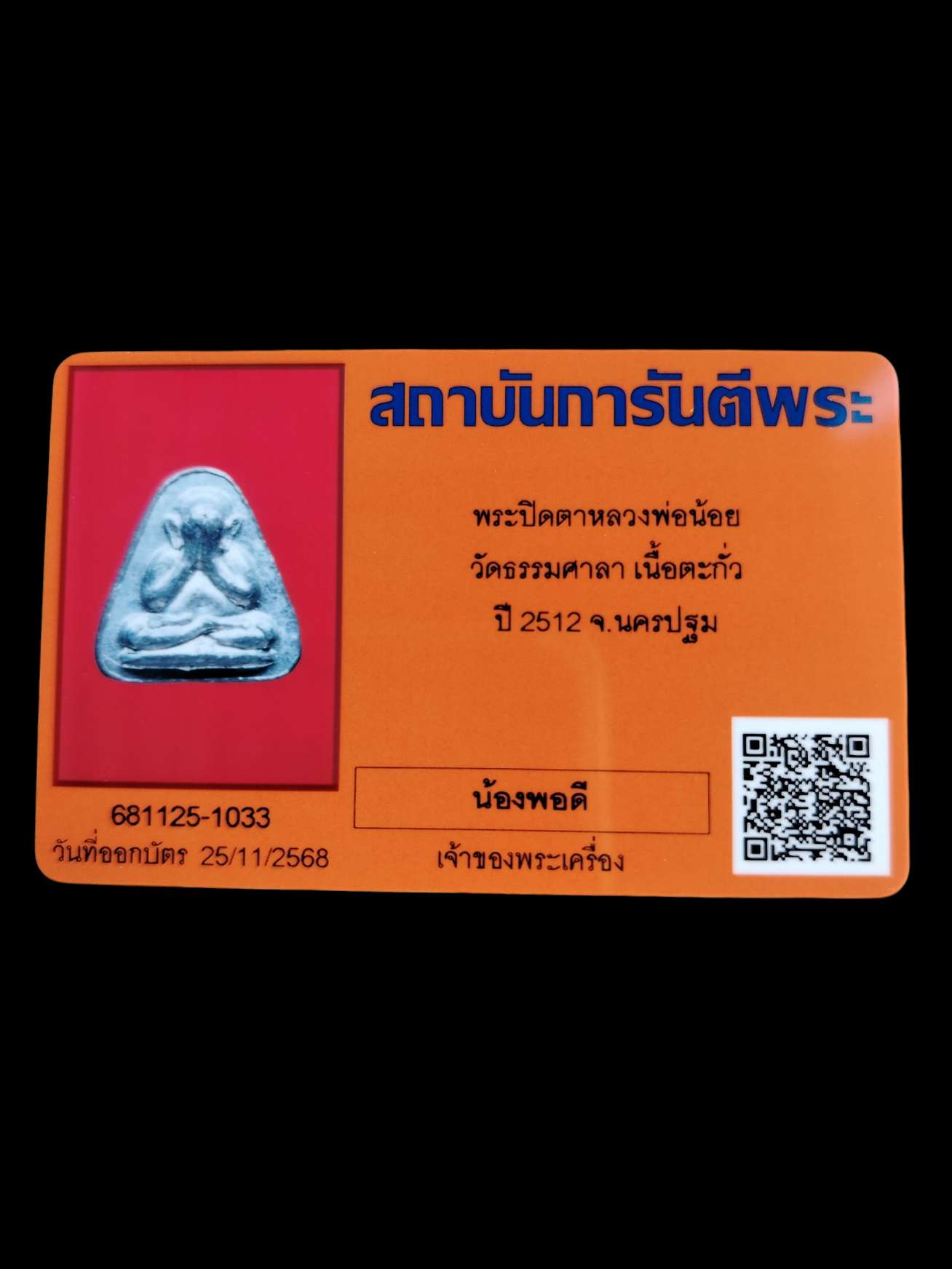 ปิดตาหลวงพ่อน้อยวัดธรรมศาลาเนื้อตะกั่ว ปี 12 มาพร้อมบัตรรับรอง