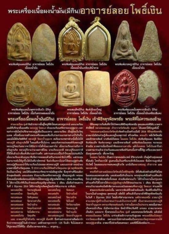 มาถึงผู้สร้าง ... พระที่ถูกสร้างชุดนี้ ตามประวัติ ท่านอาจารย์ลอย โพธิ์เงิน เป็นฆราวาสที่ไม่ใช่คนธรรมดาที่คิดจะสร้างก็สร้าง มีการศึกษา เดินทางไปเก็บมวลสาร "ด้วยตนเอง" และโดยส่วนตัวท่านเป็นฆราวาสที่มีเมตตาจิตอยู่เป็นทุนเดิม คือ รักษาคนเจ็บป่วย และ ให้ของคนช่วยทำมาหากินเป็นทุนเดิมอยู่แล้ว วิชาอาคมเท่าที่เห็นท่านทำของ ถ้าไม่แน่จริง ทำไม่ได้หรอกครับวิชาพวกนี้ต้องมีสมาธิ และวิชาที่กำกับได้ทั้งสิ้น สุดท้ายการสร้างพระท่าน ไม่เกินสิบปีที่แล้วก็ยังมีคนบอกว่า องค์ละ 30 บาทที่วัด แปลว่าการสร้างนี้ไม่ได้มุ่งเน้น พุทธพาณิชย์ตั้งแต่สมัยที่สร้าง เป็นพระที่ให้คนทั่วไปได้คล้องได้จริงๆ จนเกิดประสบการณ์มากมาย ก่อนที่จะมีการค้นพบและนิยมในปัจจุบัน (เพิ่งเริ่มนิยม) ... การที่ท่านมีรูปเหมือนในวัดจีน นั้นก็เป้นเครื่องบ่งบอกว่า มีคนเคารพศรัทธาในความดีท่านอย่างมาก จนมีศาลาเล็กๆ ให้คนได้เวียนไปกราบไหว้ ... ความดีนี้เป็นรูปธรรมและที่สุด คือ ประสบการณ์ที่หนาหูมากขึ้นทุกวันๆ