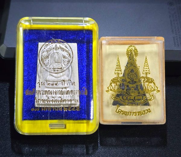(2 องค์) . สภาพสวย . เท่าไหร่ เท่านั้น ... สมเด็จวัดระฆัง 214 ปี พิมพ์พระประธาน กล่องเดิม + สมเด็จจิตรลดา โครงการหลวง เนื้อดำ ปี 2539 + กล่องเดิม