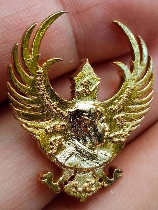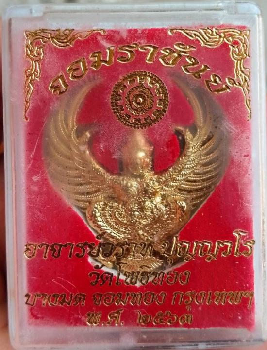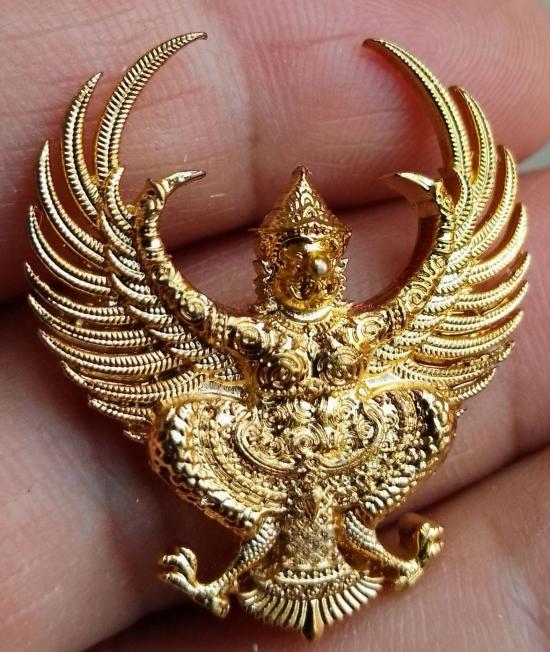 พญาครุฑ รุ่นจอมราชันย์ เนื้อกะไหล่ทอง ปี 2563 ด้านหน้าเป็นพญาครุฑ (อุ้มทรัพย์) ด้านหลัง ร.5 ปลุกเสกโดย หลวงพ่อวราห์ วัดโพธิทอง บางมด ตอกโค้ตชัดเจน
