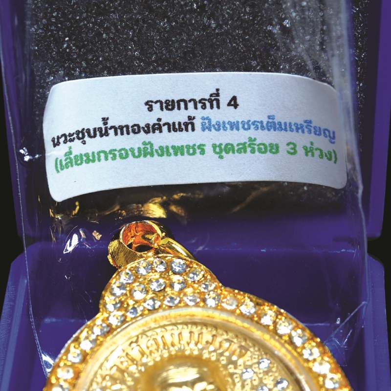 วัดใจครับ เหรียญอายุวัฒนมงคล หลวงปู่ฝั้น ปสาโท วัดหน้าผา เนื้อนวะชุบทองคำแท้ ฝั่งเพชรเต็มเหรียญ เลี่ยมกรอบ เลข 9999 ตอก กรรมการ
