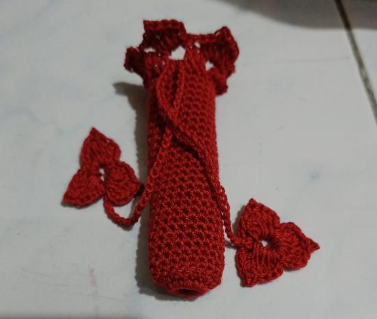ซองใส่ตะกรุด ขนาดความยาว 7 ซ.ม เส้นผ่าศูนย์กลาง 2 ซ.ม ทำจากด้ายถักวีนัส งานถัก งานฝีมือครับ สีแดง (เคาะเดียว)