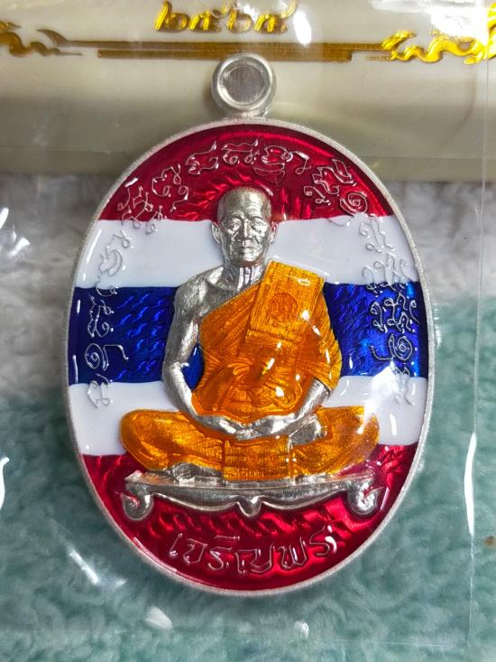 เหรียญเสมาที่ระลึกอายุ 72 ปี >>>รายการพิเศษ<<< เนื้อเงิน ลงยาธงชาติ หมายเลข 27 เลขโซนวันเกิด หลวงพ่อทอง สุทธสีโล วัดบ้านไร่ จ.นครราชสีมา