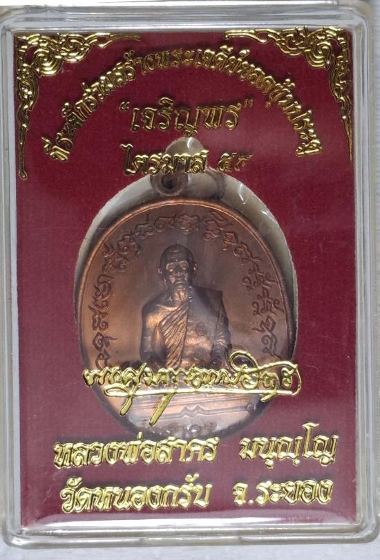 เหรียญเจริญพร ไตรมาส 55 หลวงพ่อสาคร มนุญโญ วัดหนองกรับ จ.ระยอง เนื้อทองเเดงผิวเเดงๆ ตอกโค๊ต ตอกเลขเบิ้ลสวยๆ ๗๗๖๖ พร้อมกล่องเดิมไม่แตกไม่ลานจมูกโด่งสวยเดิมๆ เหรียญประสบการณ์
