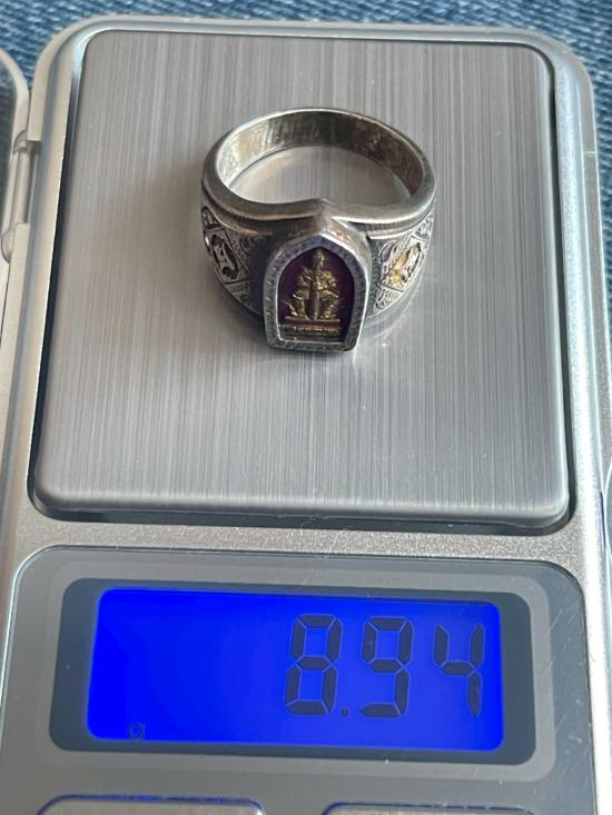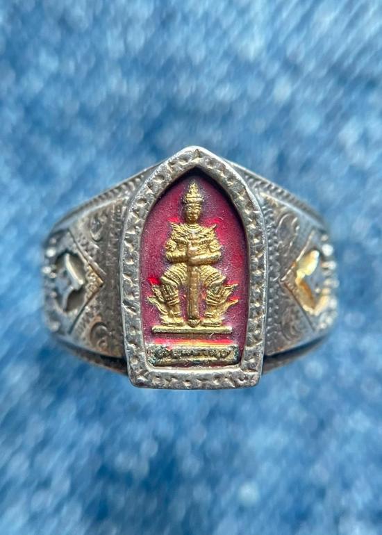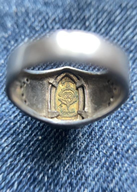 แหวนเงินงานสั่งทำ หัวแหวนเเป็นเหรียญปรกมะขามท้าวเวสสุสรรณ วัดจุฬามณี ข้างเหล็งสวยๆ ตอก 925 ไซส์ 61 นน. 8.94 กรัม