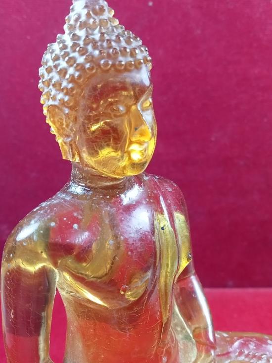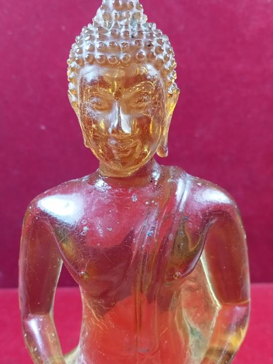 พระบูชาแก้วใส หลวงพ่อฤาษีลิงดำ 3 นิ้วมีการซ่อมบริเวณคอ และใบหูหัก |