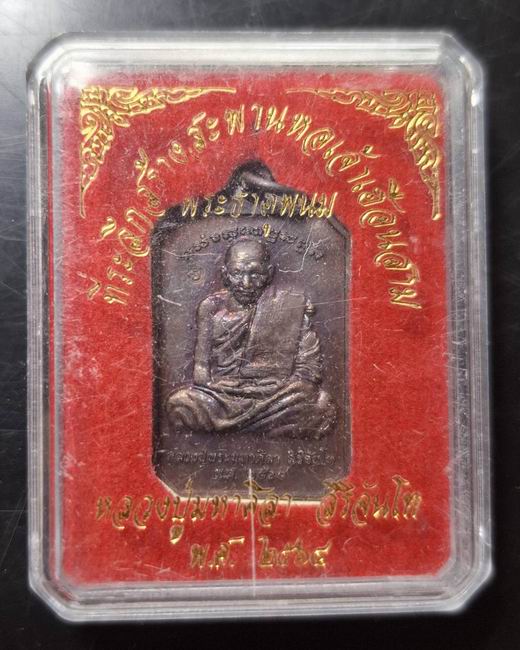 หลวงปู่มหาศิลา สิริจันโท เหรียญที่ระลึกสร้างสะพานหอเจ้าเฮือนสาม เนื้อทองแดง ปลุกเสกข้างในบริเวณพระธาตุพนม