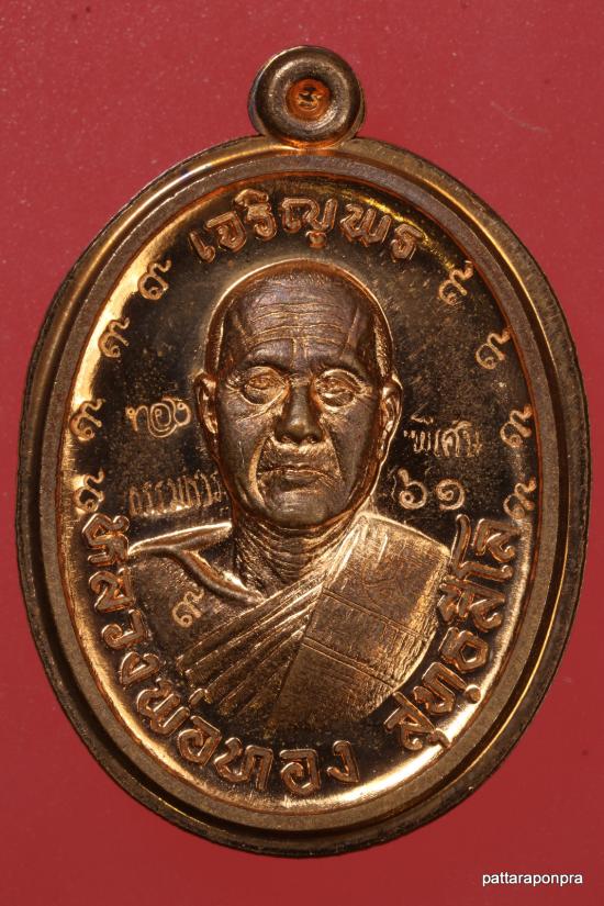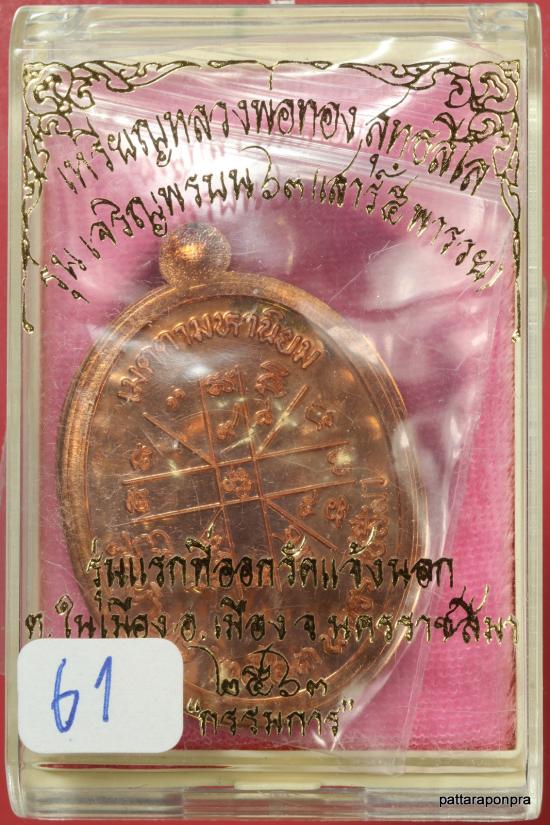 เหรียญหลวงพ่อทอง รุ่นเจริญพรบน ปี 2563 เนื้อทองแดงไม่ตัดปีก กรรมการ ตอก ๙ รอบ หมายเลข 61