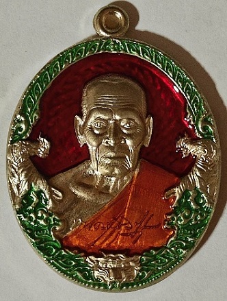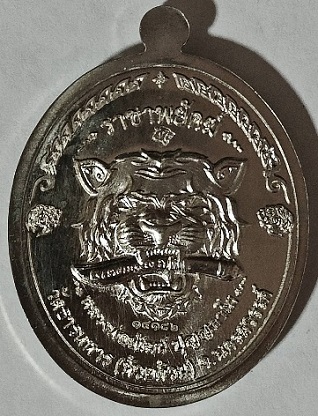 เหรียญ รุ่นราชาพยัคฆ์ หลวงพ่อพัฒน์ วัดห้วยด้วน จ.นครสวรรค์ ปี 2564 เนื้ออัลปาก้า ลงยา 3 สี พื้นแดง ขอบเขียว ลงยาจีวร เลขสวย NO.14182 กล่องเดิม (รายการที่ 5)