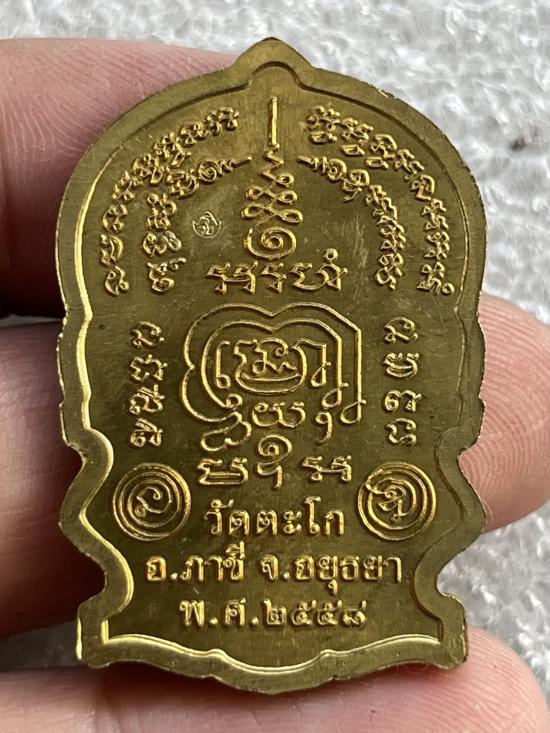 เหรียญนั่งพานชนะมาร หลวงพ่อรวย วัดตะโก ปี 2558 เนื้อทองเหลือง สภาพเดิมๆ