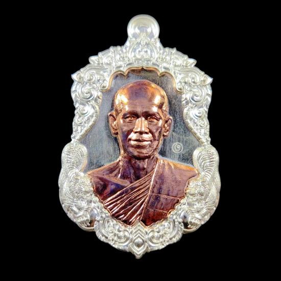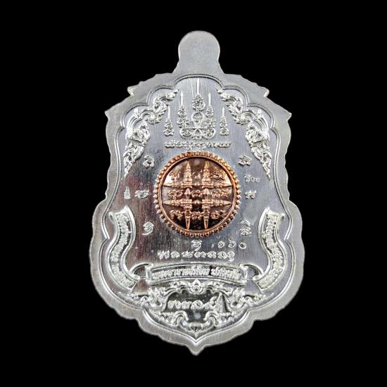 พระอาจารย์ต้อม วัดท่าสะแบง จ.ร้อยเอ็ด รุ่นรวยนะ9ดี พิมพ์เสือคู่บารมี ( เนื้อเงินหน้ากากพิงโกลด์หลังพิงโกลด์ ) No.160 พร้อมกล่องเดิม