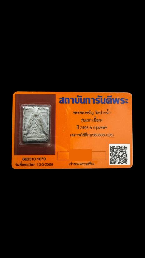 พระของขวัญ วัดปากน้ำ รุ่นแรก เนื้อผง ปี 2493 จ.กรุงเทพฯ (สภาพใช้สึก) พร้อมบัตรรับประกัน