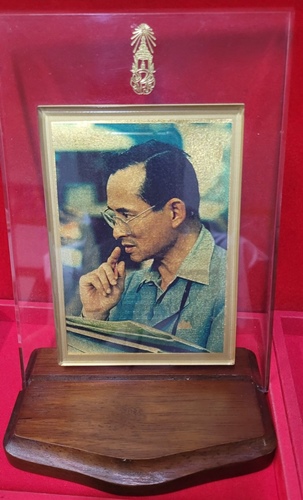 พระบรมฉายาลักษณ์ทองคำ พร้อมกรอบอะคลิลิค และฐานไม้ สำหรับตั้งโชว์ สวยงามมาก