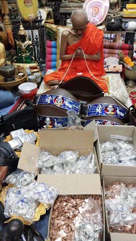 วัดใจ เคาะเดียว หลวงพ่อรวย วัดตะโก รุ่นศรฤทธิ์ (นามสกุลเดิมหลวงพ่อ)ปี 2557 เนื้อทองแดง ยกลัง 100 เหรียญ เนื้อทองแดงผิวไฟ ปี2557 ลังที่ 6 เดิม ๆ