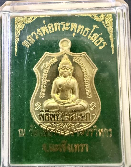 เหรียญพระพุทธโสธร พิมพ์ย้อนยุค พิธีวัดโสธรราชวราราม ปี 2560 เนื้อทองระฆังปั๊มเงา สภาพผิวเดิม รับประกันความแท้