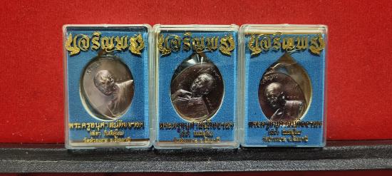 แบ่งปัน เหรียญเจริญพรบนหันข้าง หลวงพ่อเขียว กิตติคุโณ วัดห้วยเงาะ จ.ปัตตานี ปี58 เนื้อทองแดงผิวรุ้ง รายการสมนาคุณผู้จองรายการเนื้อเงินหน้ากากทองคำ ไม่มีในรายการจอง ชุด 3 องค์ กล่องเดิมๆ แท้ทันประกันให