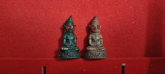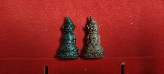 รูปหล่อพ่องั่งตาแดง หลวงพ่อวิญญู สุสานร้าง วัดท่าลาดใต้ จ.ฉะเชิงเทรา ชุดงั่งทรงเครื่อง2ตน เนื้อสนิมเขียวตาแดงหมายเลข164 เนื้อทองแดงเถื่อนสนิมแดงตาแดงหมายเลข126 ประกันแท้