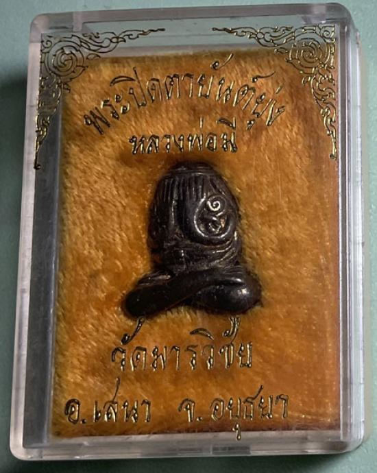 พระปิดตาหลวงพ่อมี วัดมารวิชัย เนื้อทองเหลือง กล่องเดิมๆครับ